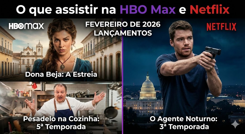 Fevereiro de 2026 reserva grandes emoções para os entusiastas do streaming, com a HBO Max e a Netflix apresentando catálogos repletos de produções nacionais de peso, o retorno de realities aclamados e o desfecho de sagas intensas. Entre os destaques absolutos estão a estreia da novela brasileira Dona Beja, protagonizada por Grazi Massafera, e a aguardada terceira temporada de O Agente Noturno. Se você busca dramas históricos, ação frenética ou romances sensíveis, este mês promete maratonas inesquecíveis.