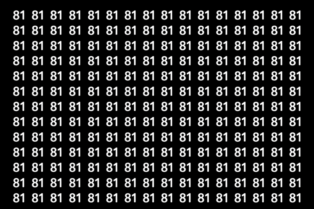 À primeira vista, a imagem abaixo parece simples: uma sequência repetida do número 81, organizada de forma aparentemente idêntica. Mas não se deixe enganar. Em algum ponto do desenho, um único número 18 está escondido — e ele passa despercebido pela maioria das pessoas.